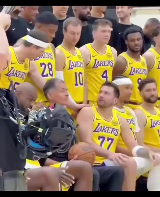 没想到都报销了此前湖人大合照,东契奇里夫斯哥俩打打闹闹