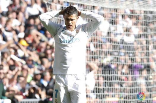 再看看C罗。开场第2分钟,C罗曾为皇马先拔头筹,他的头球击中门楣弹进网窝,但越位在先被判无效。8分钟后,C罗上演了滑稽一幕,克罗斯左路横传,点球点附近无人防守的情况下,C罗抡起左脚却踢了个空,留下了一脸的尴尬。当然,葡萄牙射手也不是一无是处。第31分钟,C罗带球突入禁区左侧,他的小角度射门被特尔斯特根左脚挡出。不过此后,C罗却消失得无影无踪。