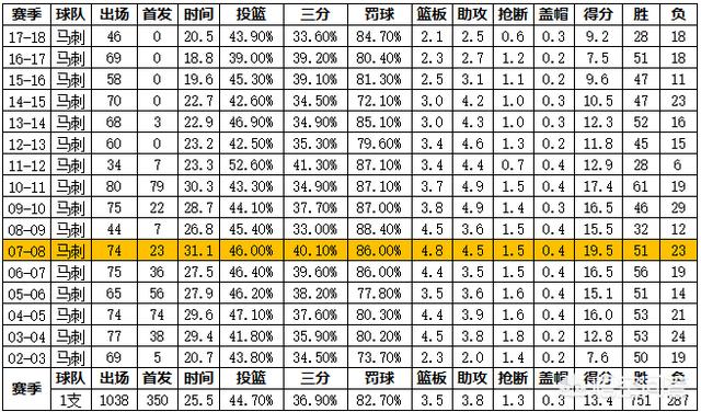 以上是吉诺比利常规赛的数据。从2002年加入马刺以来,吉诺比利大部分是第六人的角色。虽然数据并不太惊艳,最好的07-08赛季场均19.5分,4.5助攻,4.8篮板。但是吉诺比利在球队起到的作用不可忽视。这一年,吉诺比利成为马刺队的得分王。