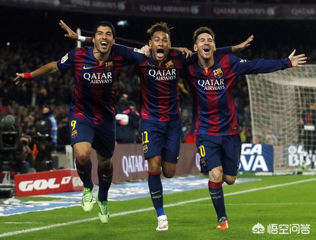 梅西,龅牙苏,内马尔,这三人在巴萨,被称为最佳梦幻三叉戟MSN,14/15赛季所向披靡,称霸西甲足坛,获得三冠王(国王杯、西甲、欧冠)