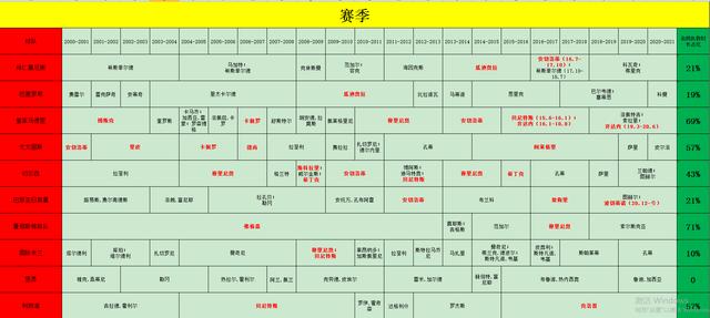 10支豪门球队2000-2021赛季主教练人选及名帅占比