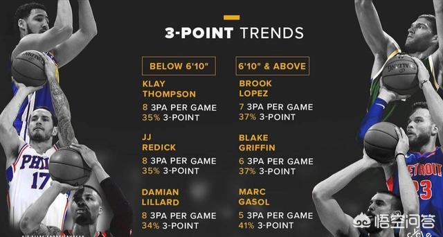投三分在我们眼中都是外线选手干的,但是如今的联盟有越来越多的内线选手跑到外线来投射三分,最让我们惊奇的就应该是洛佩慈了,这个移动缓慢有着绝对身高的内线,却将三分成为了本赛季他的杀手锏,他的三分球命中率本赛季高达36.4%,你要知道克雷汤普森这样的历史级射手,也仅仅只有34.8%。再来看看,来到活塞的格里芬,本赛季他的三分球命中率为36.7%,也要高出克雷汤普森,而最让人感到惊奇的小枷锁,他的三分球命中率高达41.3%,如今的联盟,如果一个内线不具备三分投射,不好意思,在市场上寻得一份自己满意的合同。