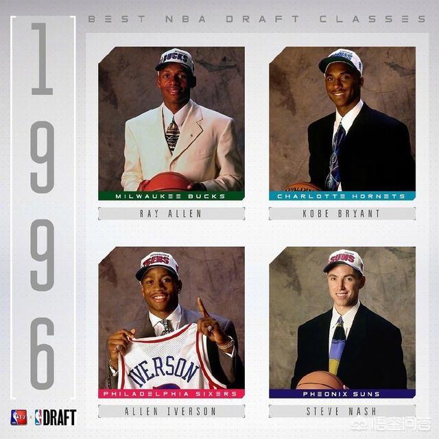 1996年是成才率最高的一年,这一年产生了如科比、艾弗森、纳什、雷阿伦这样的巨星。由于1996届的球星众多,他们一共入选了高达68次的全明星,30次最佳阵容。艾弗森、科比、纳什三人获得过MVP,其中纳什获得过两次。