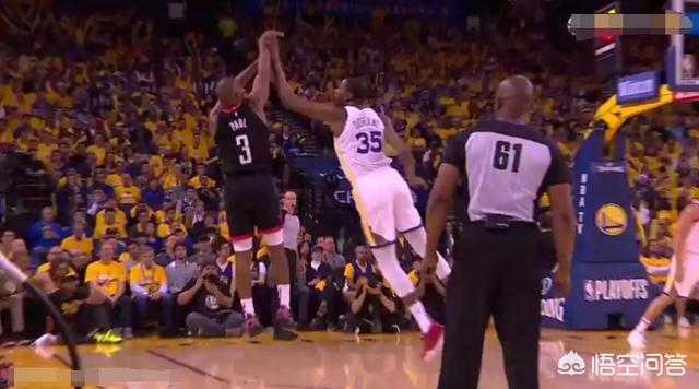 第二球是在杜兰特防守下的三分出手,这球也是明显的打手,应该判罚3+1,但裁判同样选择了忽视。似乎这样的剧情,火密很熟悉,因为去年西决有同样的判罚出现。