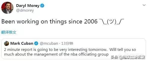 连独行侠老板库班都站出来凑热闹,他说:明天最后2分钟的裁判报告将会非常有意思,将会告诉你很多关于NBA裁判群体的管理问题。莫雷转发了库班的推特,并且提到了2006年的小牛大战热火。被判入狱的前NBA裁判蒂姆多纳吉在出狱后爆料,2006年小牛被黑了。