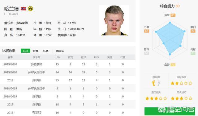 上半个赛季,哈兰德在奥地利萨尔茨堡红牛打出了24场(16次首发)28球5助攻的数据,下半个赛季,哈兰德在德甲多特蒙德初来乍到,就打出了15场(8次首发)13球3助攻的逆天数据,哈兰德简直就是为刷数据而生。